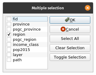 If you open the attribute table of the PHL_regions layer, you might notice that there are still province and psgc_province attributes that don’t provide useful information (i.e. the features now correspond to regions and not provinces). You may delete or remove these attributes. At this point, you may want to save your work as a project (CTRL + S) and use the Memory Layer Saver plugin to make your layers in memory persistent or export your PHL_provinces and PHL_regions provinces as vector files (e.g. as geopackage or geojson). | |
