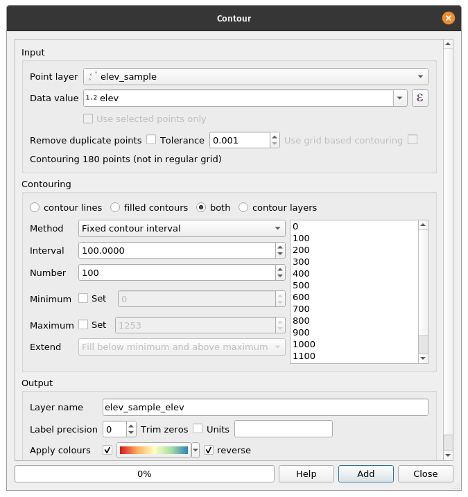Exercise 16: Contours from pointsContours can be generated from a set of points by using the Contour plugin .