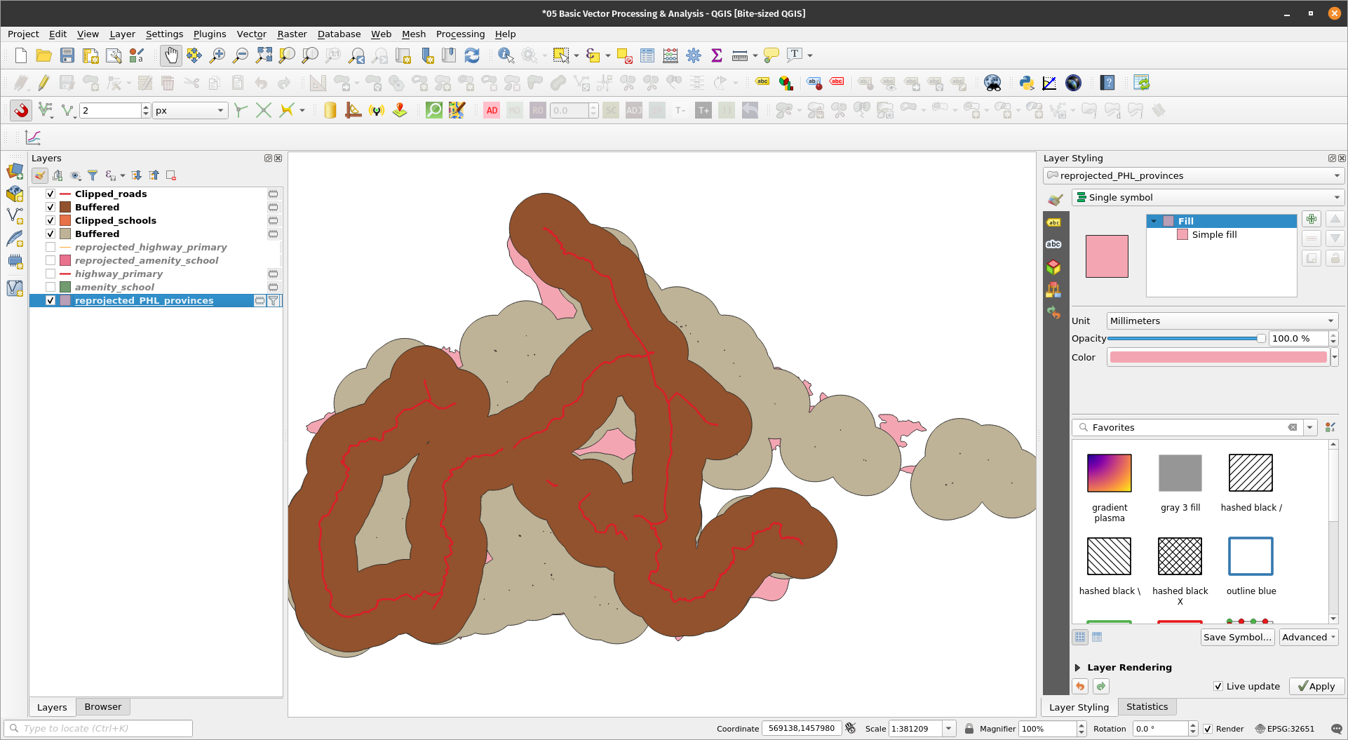 Exercise 6: Clipping the primary roads and schools vector to the province of Albay 16